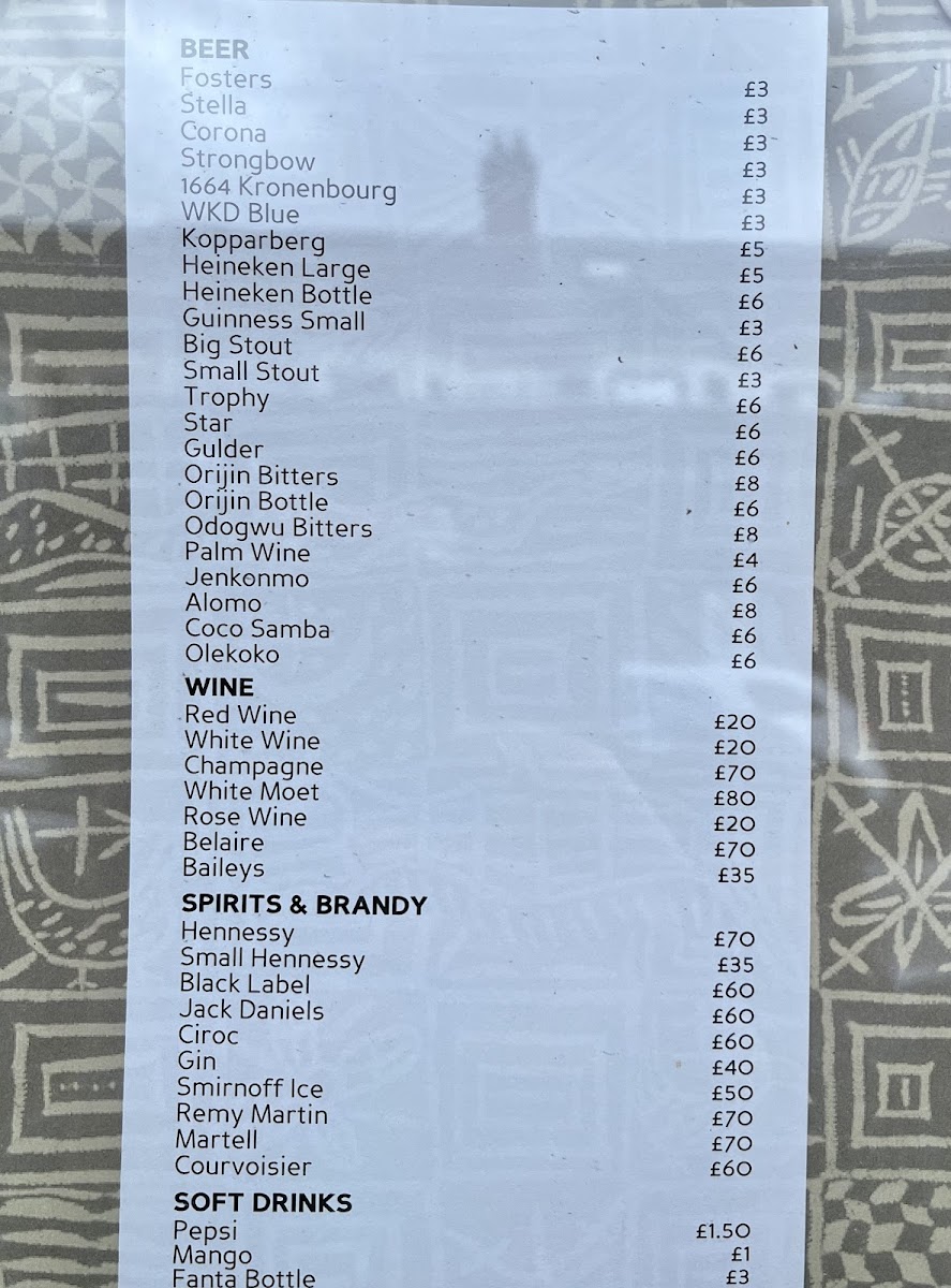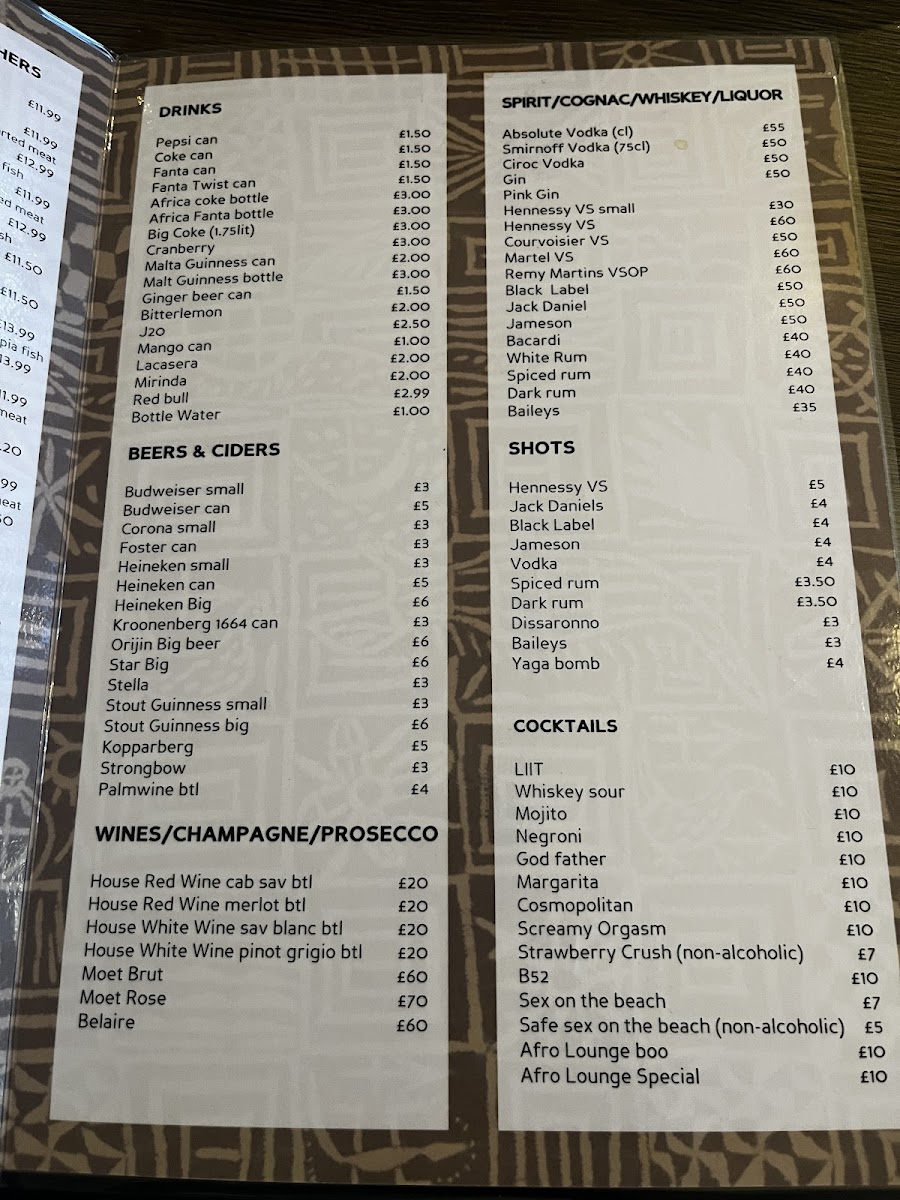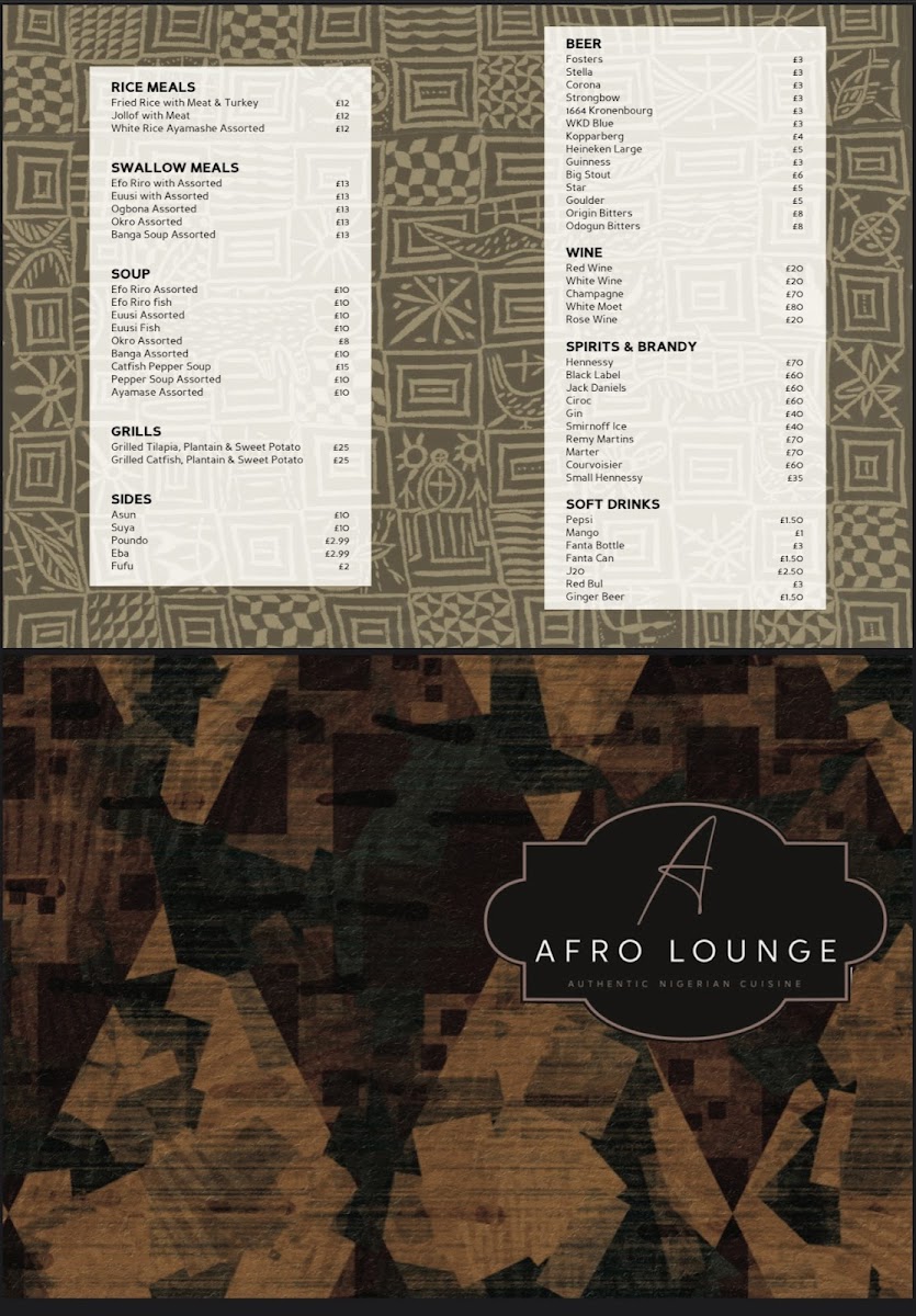 Afro Lounge Menu