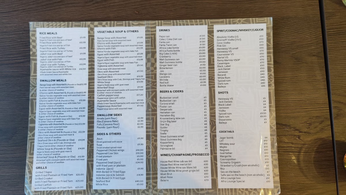 Introducing the Menu at Afro Lounge